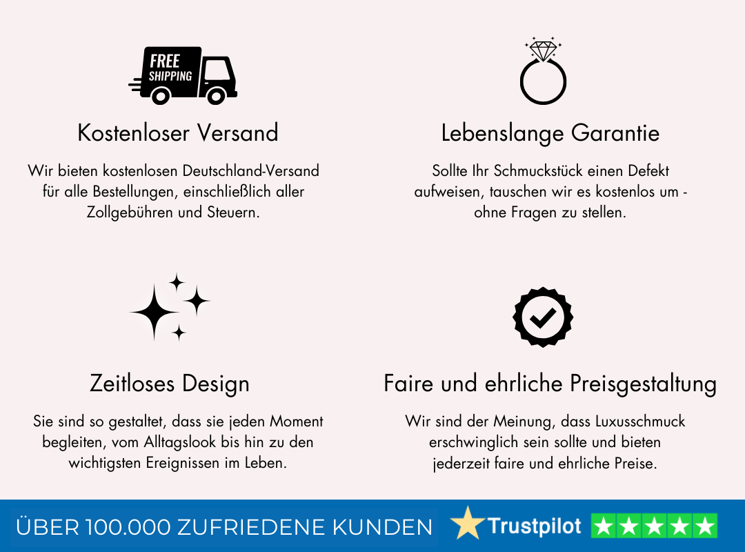 Wir arbeiten mit viel Herzblut an jedem Stück und garantieren eine lebenslange Garantie auf die beste Verarbeitung. Sollten Sie aus irgendeinem Grund mit Ihrem Schmuckstück nicht zufrieden sein, können Sie ihn einfach und stressfrei zurückgeben.